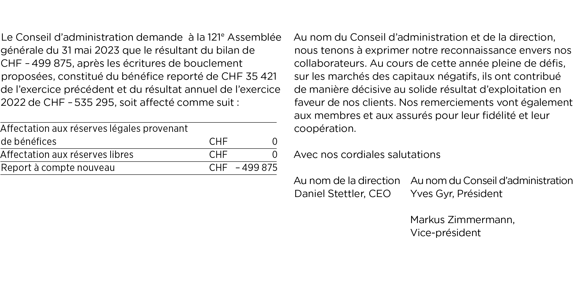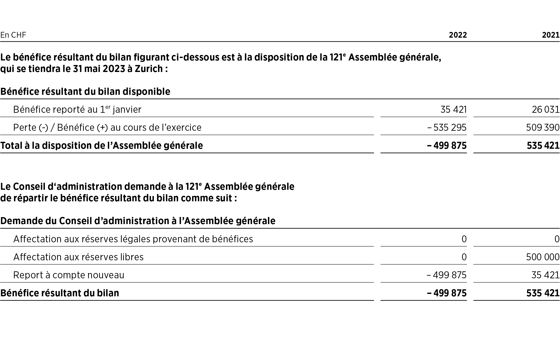 Proposition concernant l’emploi du bénéfice au bilan au 31 décembre 2022