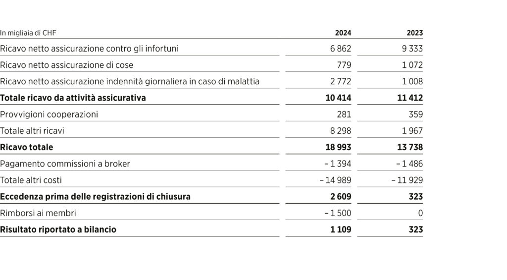 La maggior parte dei sinistri è stata causata da incidenti (76%). Seguono, con il 19%, i sinistri legati alle indennità giornaliere di malattia. Solo il 5% riguarda sinistri nel settore dell’assicurazione cose.